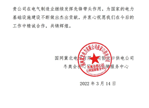 日前,举世瞩目的北京2022年冬奥会和冬残奥会圆满落下帷幕。在冬奥及两会期间保电筹备和赛时保障过程中,我公司各单位圆满完成保电任务,获得了一致好评。