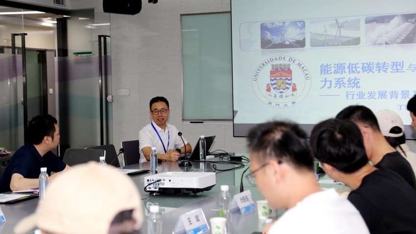 参观过后,股份公司董事长丁振华以“能源低碳转型与新型电力系统”为主题为研学团开展授课分享,丁总的分享让研学团成员们对能源互联网、智慧电网及新型电力系统有了更深刻的理解。